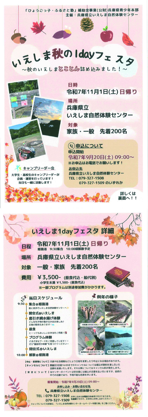 お申し込み・お問い合わせ先(お気軽にお問い合わせください) 兵庫県立いえしま自然体験センター TEL(079)327-1508/1509
